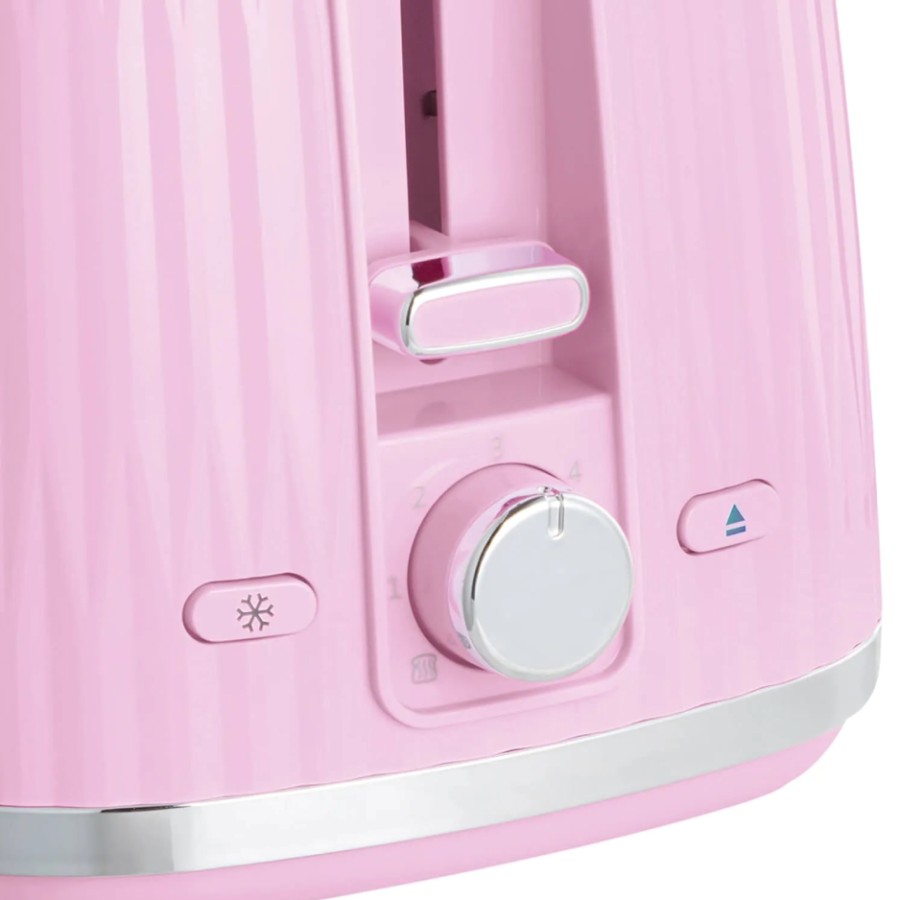 With its sleek textured raspberry design and chrome accents, the Eden Toaster Raspberry adds a vibrant touch to any kitchen. Enjoy perfectly toasted slices with six browning settings, plus frozen, reheat, and cancel functions for added convenience. The high lift feature makes it easy to retrieve your toast or bagel without hassle.