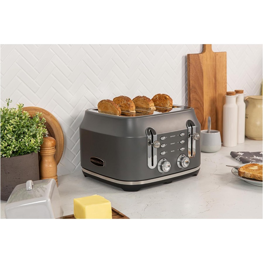 The Classic 4-slice toaster combines a traditional design with innovative features. The long slots fit bread of various thicknesses and sizes, ensuring slices are evenly toasted.