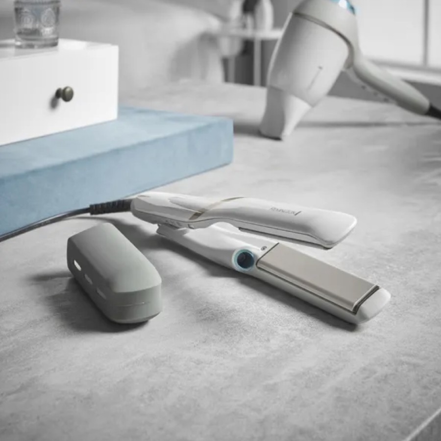 Create expert-looking styles that are smoother, softer and shinier, with the Hydraluxe Pro Straightener. The Hydracare Mist Technology lets out a Cool Moisture Mist, for complete protection against heat damage; while the Moisture Lock Ceramic Coating helps preserve your hair's perfect balance of moisture.