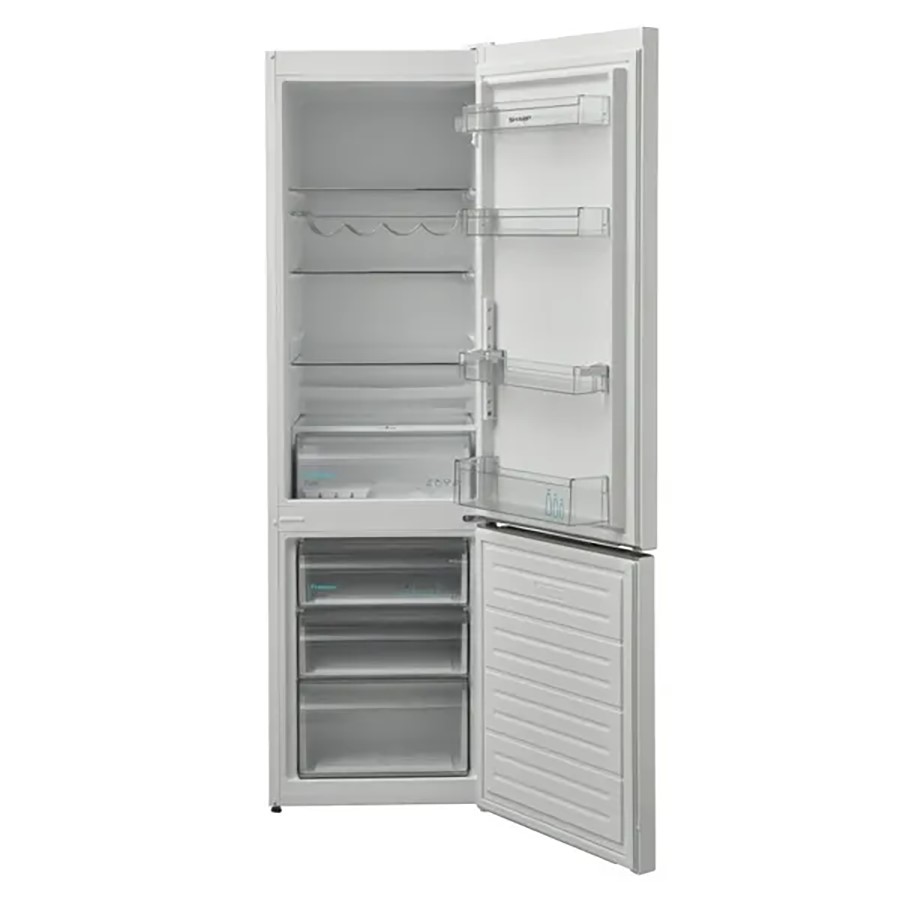 Maximize your kitchen efficiency with the Sharp SJ-BB05DTXWF-EU 288L fridge freezer. This freestanding appliance offers a spacious 204 L fridge and 84 L freezer, perfect for families. Its NanoFrost technology minimizes frost buildup, reducing the need for manual defrosting. Features like AdaptiLift adjustable door trays and a dedicated Fruit&Veg Zone ensure organized and fresh storage. The reversible door and integrated handle provide flexible installation options, while its compact 180 cm height and 54 cm width fit seamlessly into various kitchen layouts.