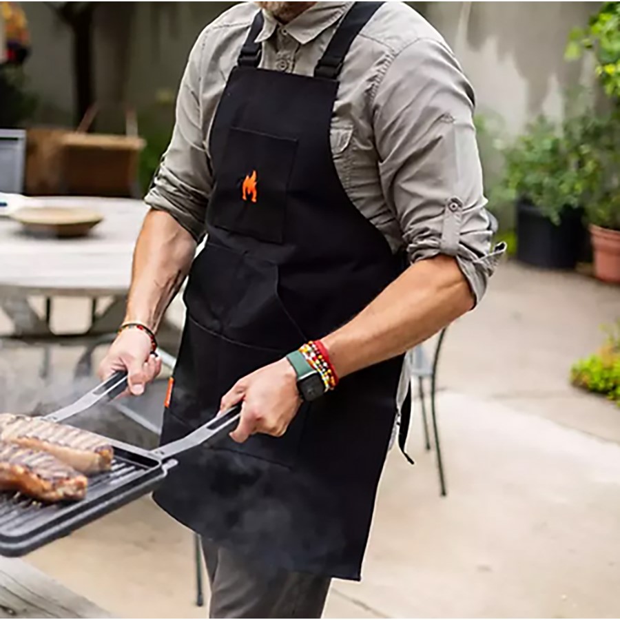 The Apron is a practical and durable accessory designed for outdoor cooking, particularly for use with Solo Stove fire pits, grills, or pizza ovens. Made from high-quality, heat-resistant materials, the apron offers protection from spills, splashes, and heat while cooking. It often features adjustable straps for a comfortable fit, along with pockets for storing tools, utensils, or seasonings. Whether you're grilling, baking, or preparing meals over an open flame, the Apron ensures you stay clean and protected, allowing you to enjoy the outdoor cooking experience with ease and style.