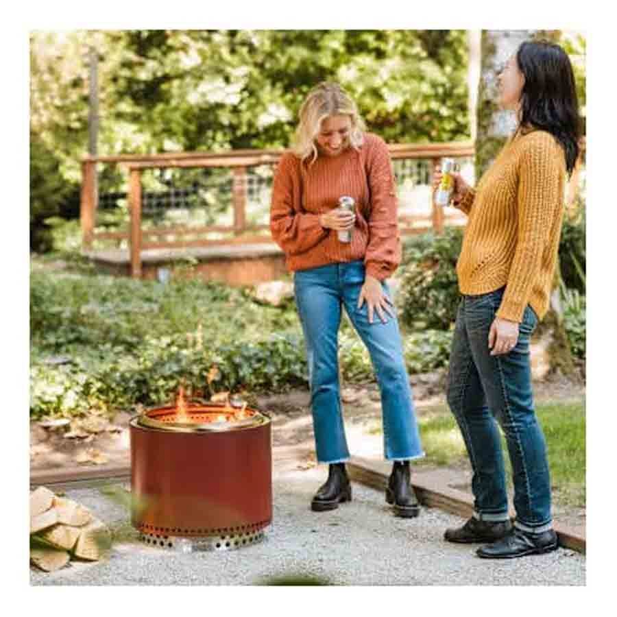 Add a vibrant touch to your outdoor gatherings with the Solo Stove Bonfire + Stand 2.0 in Mulberry. This smokeless fire pit features Signature 360° Airflow technology, ensuring efficient combustion and a virtually smoke-free experience. The high-heat ceramic coating in a rich Mulberry hue not only enhances durability but also resists patina, maintaining its striking appearance over time.