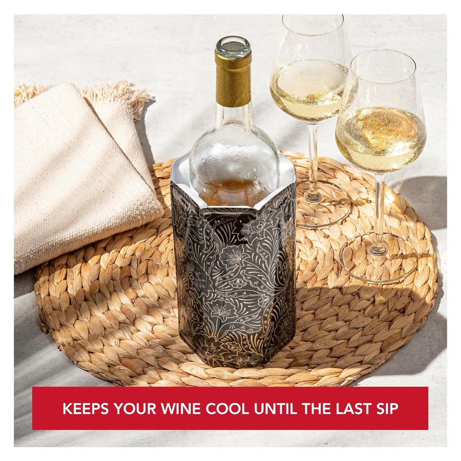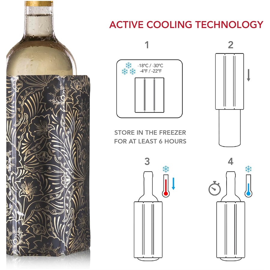 The Vacu Vin Active Cooler Wine Royal Gold chills your wine within 15 minutes and keeps it cool for hours. Its flexible, insulated sleeve fits snugly around 0.7–1L bottles, ensuring your wine stays at the ideal serving temperature from the first sip to the last. Simply store the reusable sleeve in the freezer for at least six hours, then wrap it around your bottle for rapid, mess-free cooling. Lightweight and portable, it's perfect for picnics, barbecues, beach days, or any outdoor event. After use, the sleeve flattens for easy storage, making it a practical and stylish addition to your entertaining essentials