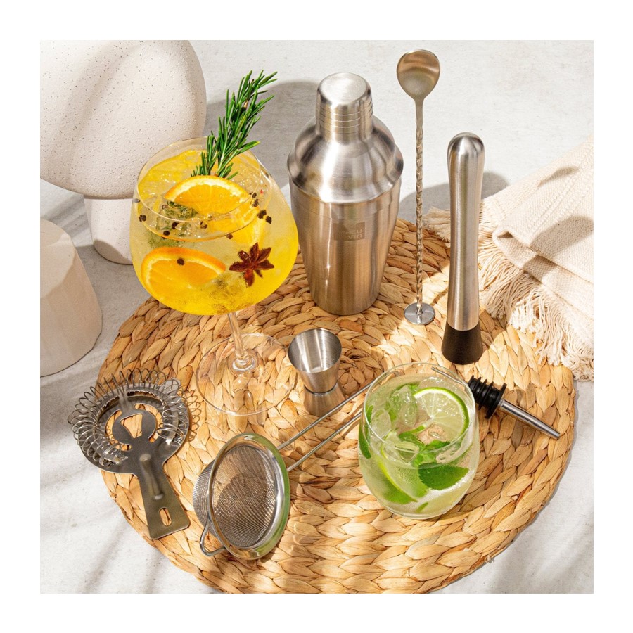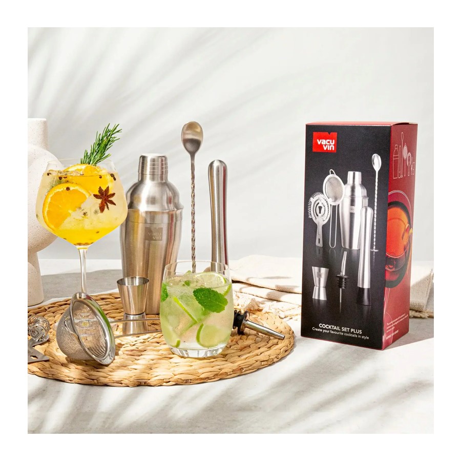 Take your home bartending to the next level with the Vacu Vin 7-Piece Cocktail Set. This comprehensive set includes everything you need to measure, muddle, sieve, stir, and serve your favorite cocktails with ease. Featuring a 550 ml shaker with a built-in strainer, double jigger, muddler, Hawthorne strainer, fine sieve, bottle pourer, and bar spoon, it provides all the essentials for crafting professional-quality drinks. Crafted from durable stainless steel and dishwasher-safe, this set is perfect for cocktail enthusiasts and those looking to impress guests at any occasion