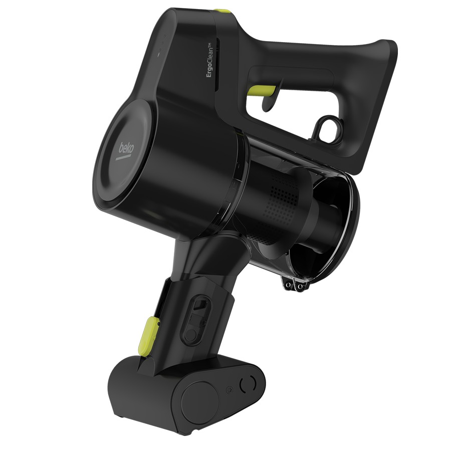 The BEKO VRT51225VB is a cordless stick vacuum boasting a 150 W motor and a 25.2 V Li-ion battery, giving you up to 45 minutes of runtime in low power mode (with about 17 minutes at max). It features a 0.55–0.60 L dust container, easy “TrayClean” dust bin emptying, and two suction modes for versatile cleaning.