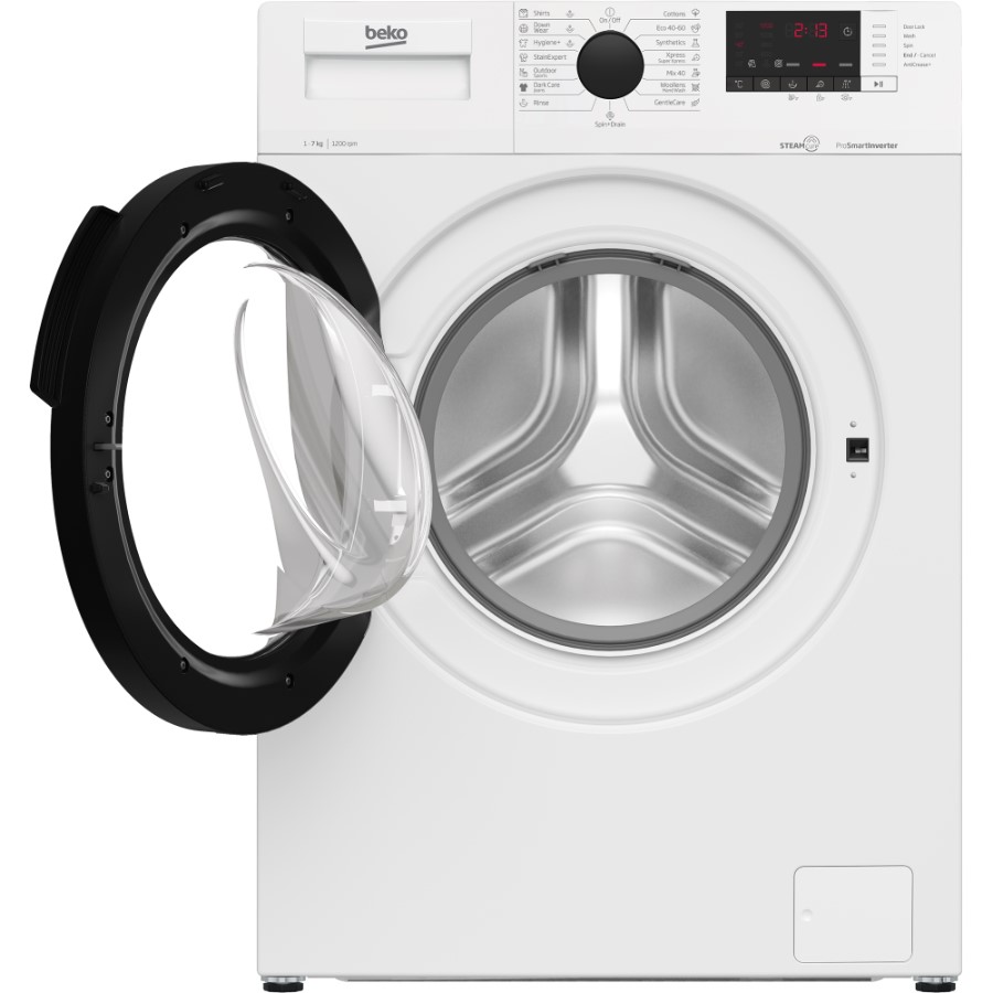 This Beko front-loading washing machine offers a solid blend of performance and energy efficiency. With its 7KG capacity, it can comfortably handle moderate household laundry loads. The spin speed options allow for a customizable wash experience, letting users adjust according to fabric types and preferred drying times. The machine’s energy consumption is relatively low, ensuring lower electricity bills, while its water consumption is optimized to be eco-friendly. The spinning noise level is kept at 74 dB, providing a quieter operation during the spin cycle.